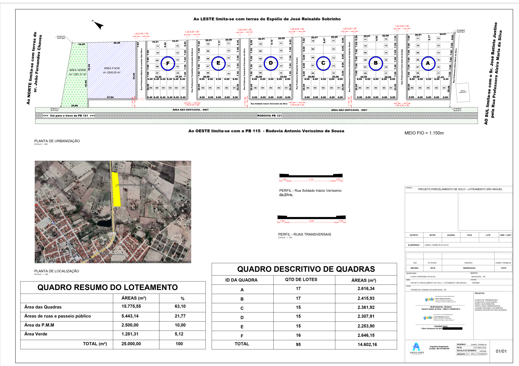 Localizado no Município de Montadas/PB, o Loteamento São Miguel possui terrenos de 140 à 190 m². Ao longo do processo de implementação do Loteamento, serão entregues aos adquirentes dos lotes calçamento de pedestre, sistema público de eletricidade e iluminação.