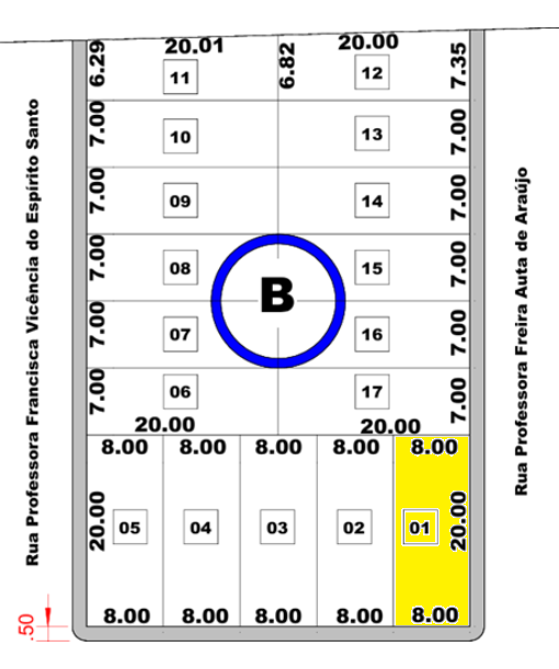 Por meio da Planta Virtual, nossa plataforma apresenta os terrenos disponíveis para compra junto ao Loteamento São Miguel.